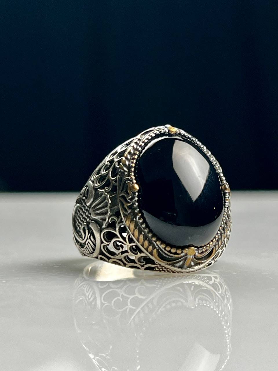 Material: 925 Silver (925 Hallmarked) Stone: Black Onyx Origin: Turkey Weight: 7 to 8 gram (Depends on ring size)