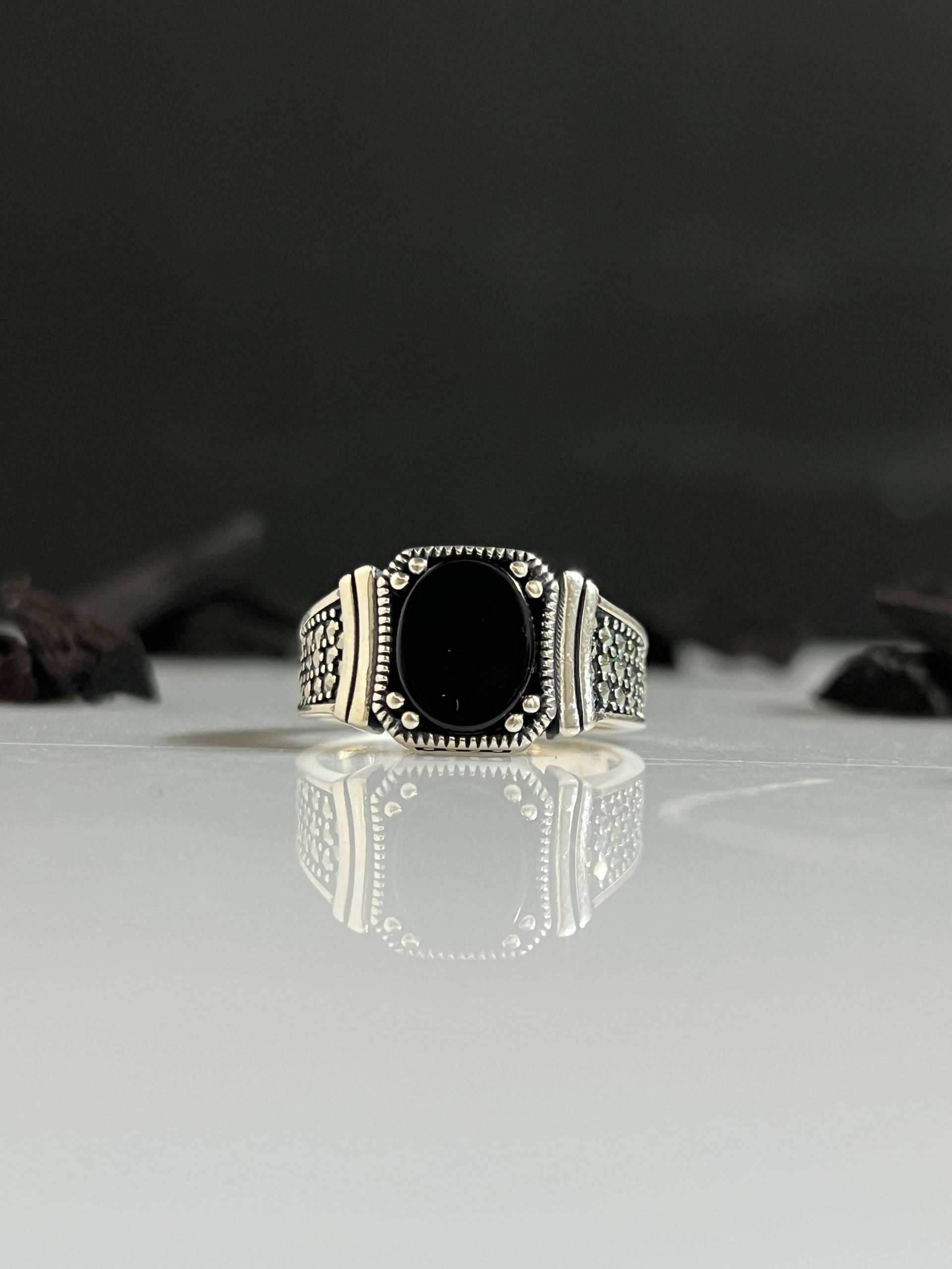 Black Onyx Stone Silver Ring #031