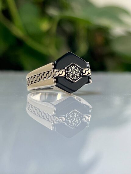 Black Onyx Stone Silver Ring #028