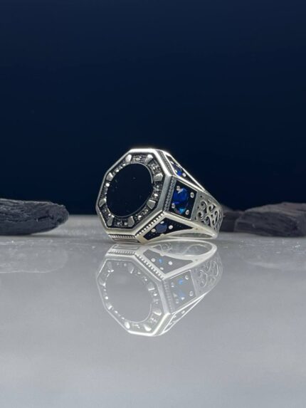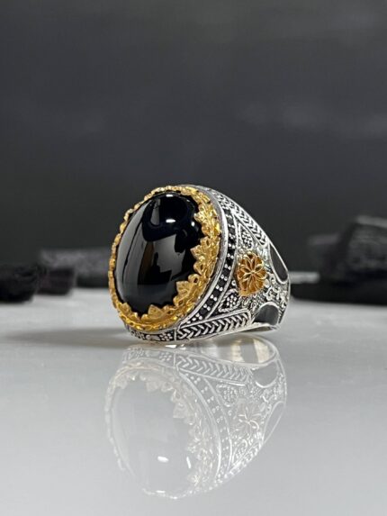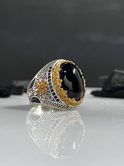 925 Silver Ring Decorated with Black Onyx Stone #004