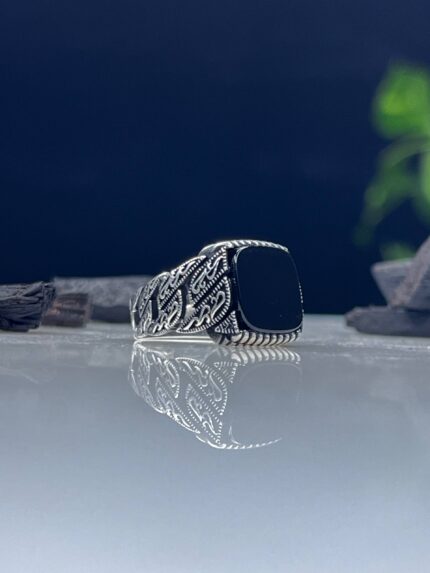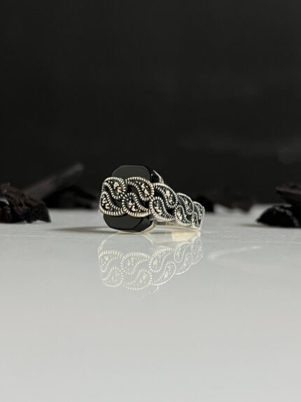 925 Silver Ring Decorated with Black Onyx Stone #004
