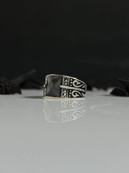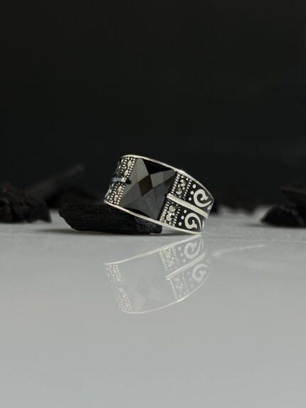 925 Silver Ring Decorated with Black Onyx Stone #004