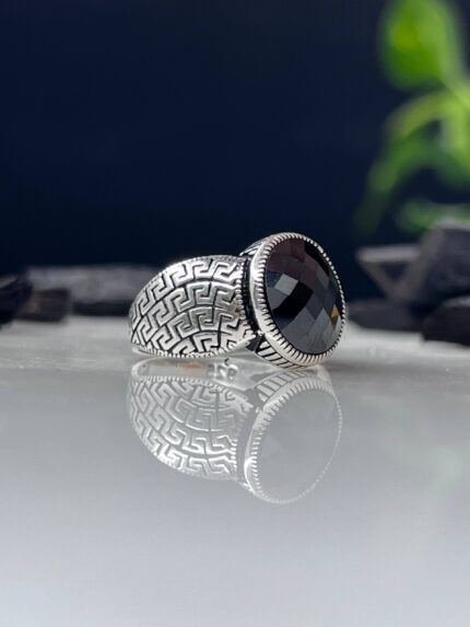 Black Onyx Stone Silver Ring #021
